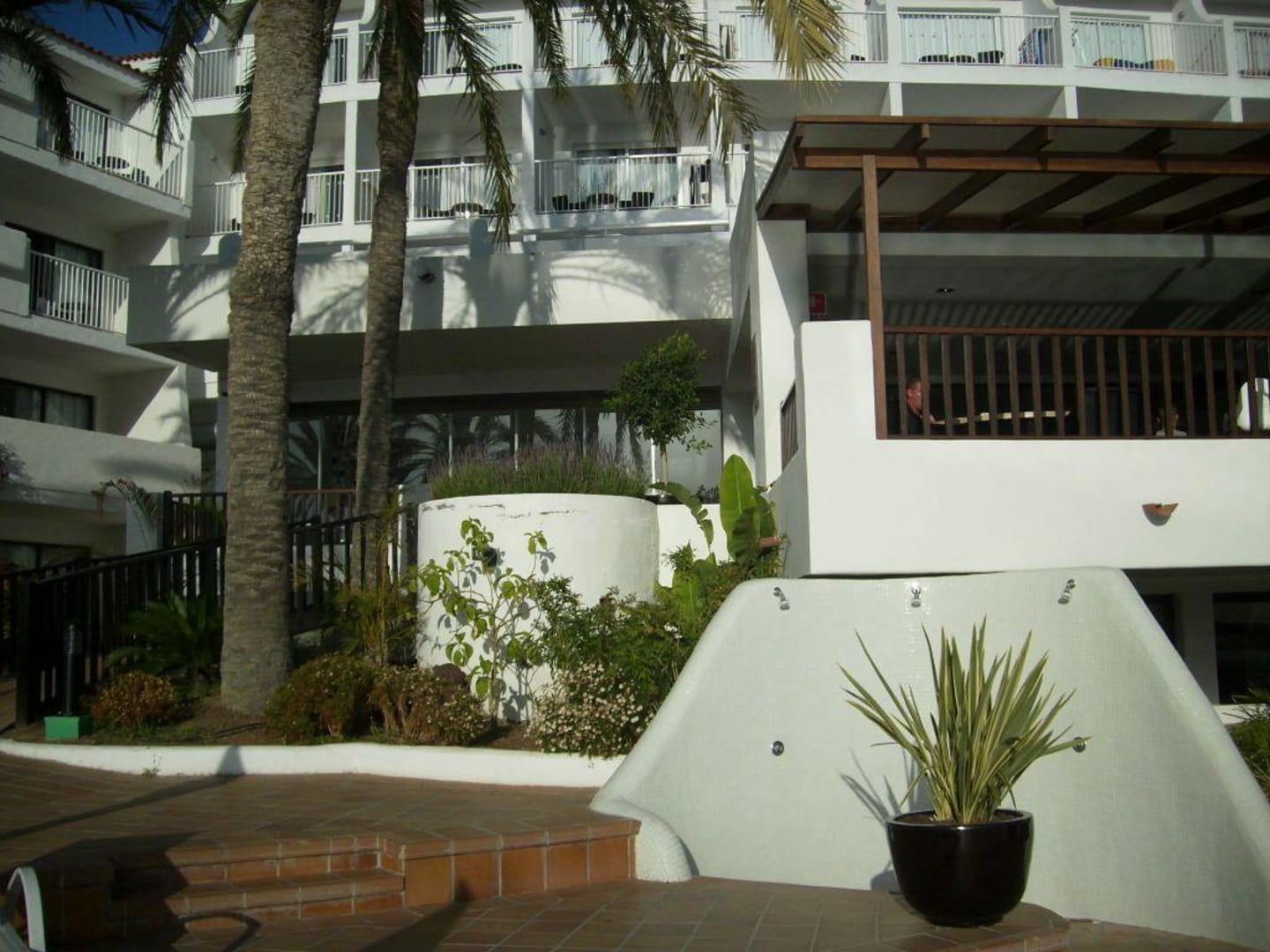 rechts im Bild das Restaurant und von links der Aufgang