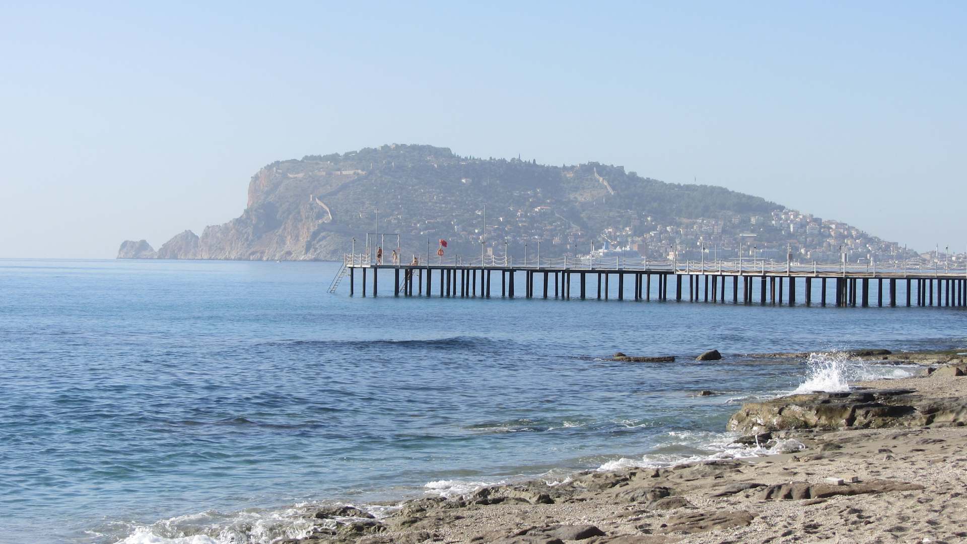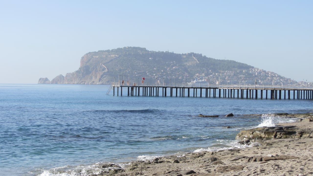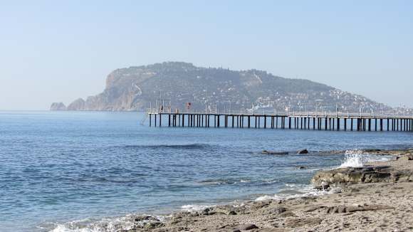 Aussicht vom Strand auf Alanya/ Burg u.s.w.