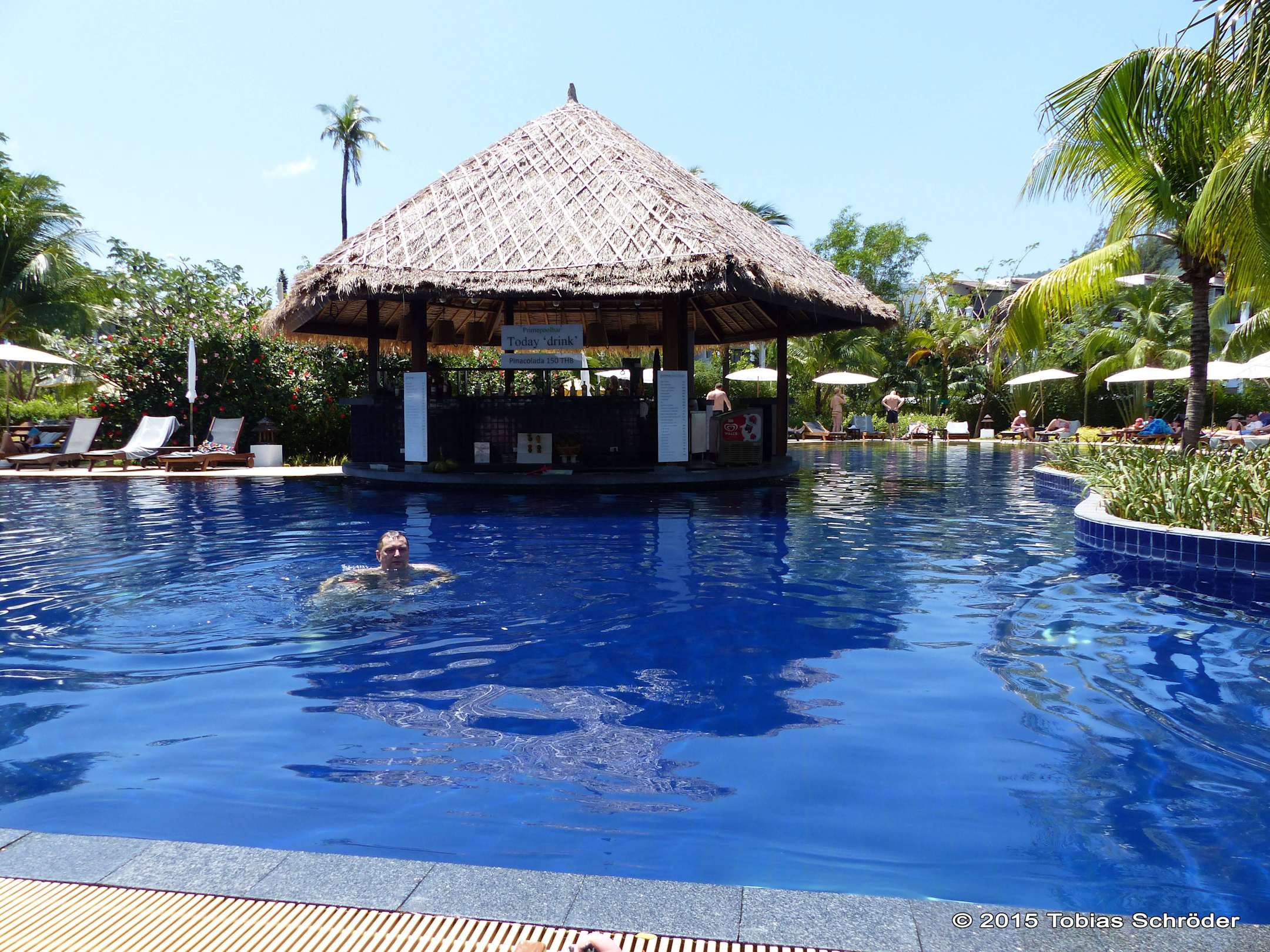 Blick auf den kleineren Pool mit Poolbar direkt am Restaurant .