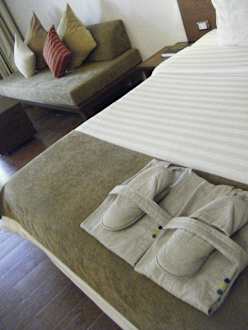 Bett mit Mantel und Slipper