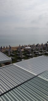 Blick von der Terasse (über das Restaurantdach zum Meer)