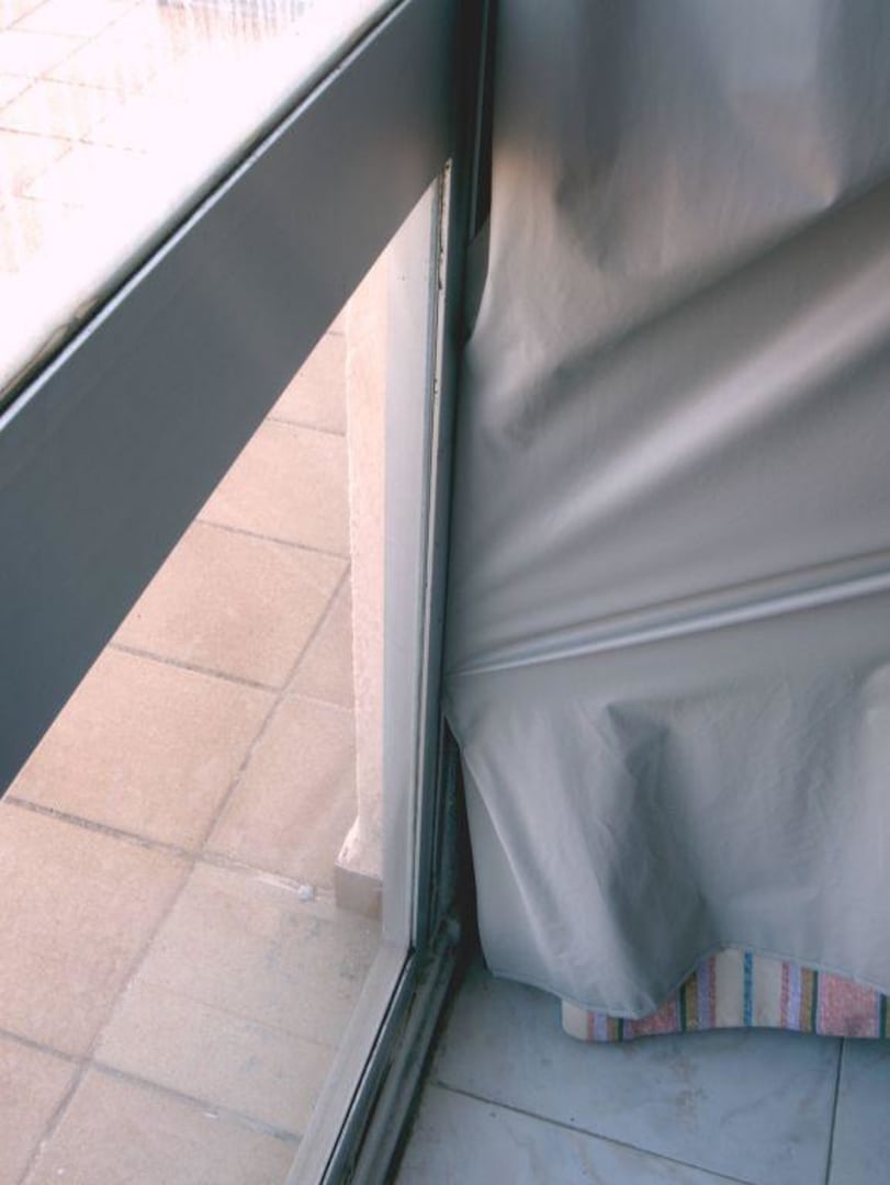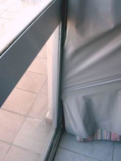 Hier haben Langfinger keine Chance!Zumindest nicht, wenn es um den evt. Diebstahl eines Iso-Vorhangs aus dem Zimmer geht, denn der wurde vorsorglich gleich in den Rahmen der verbarrikadierten Balkontür eingearbeitet. Oder hatte man es etwa so eilig, die Tür zu verrammeln, dass das keinem aufgefallen sein sollte??