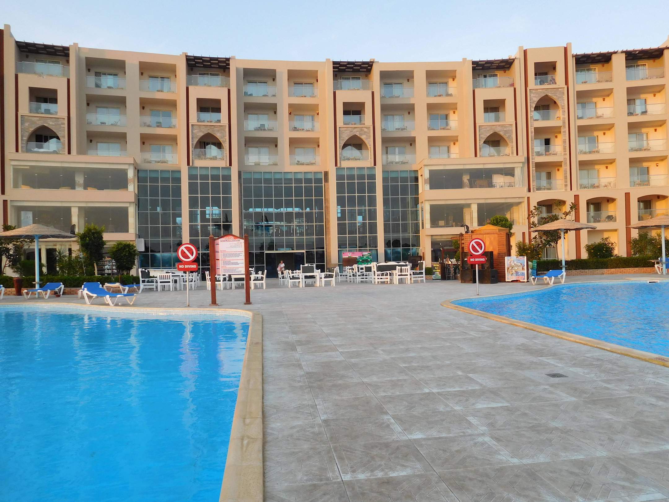 Hotel od strony basenów