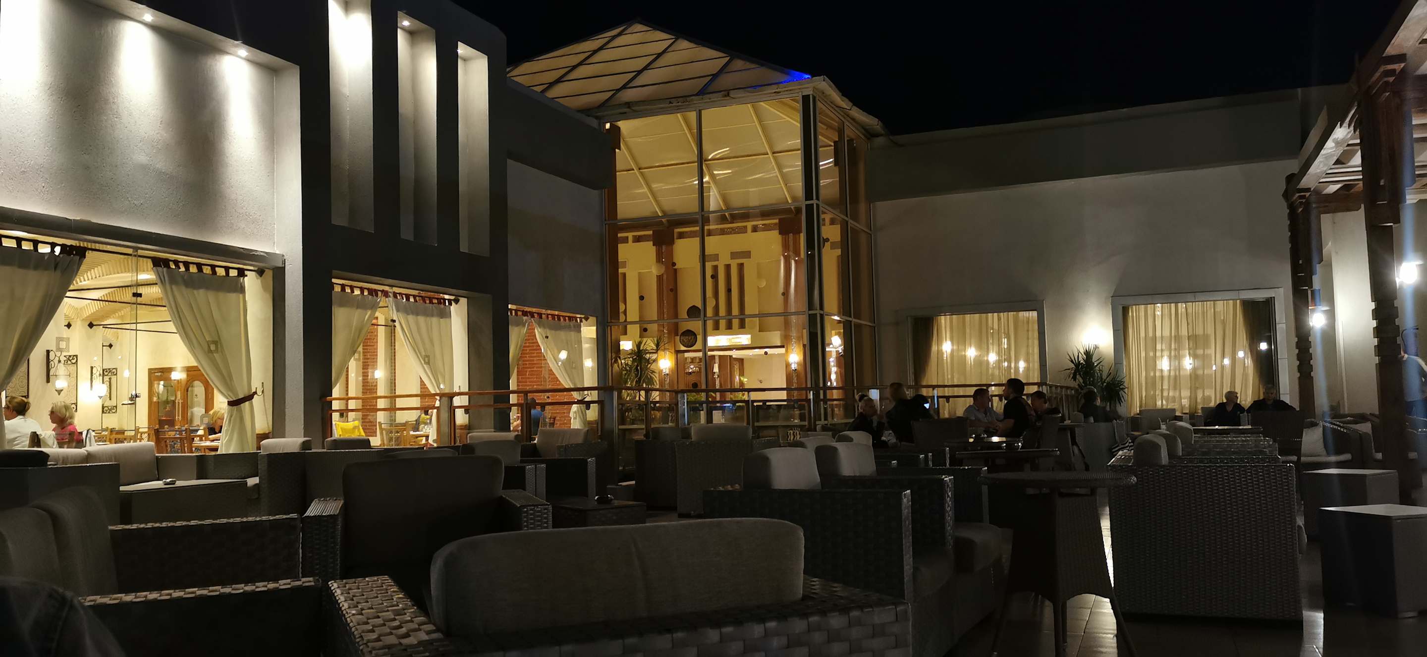 Die Sitzgelegenheiten außen an der Lobbybar
