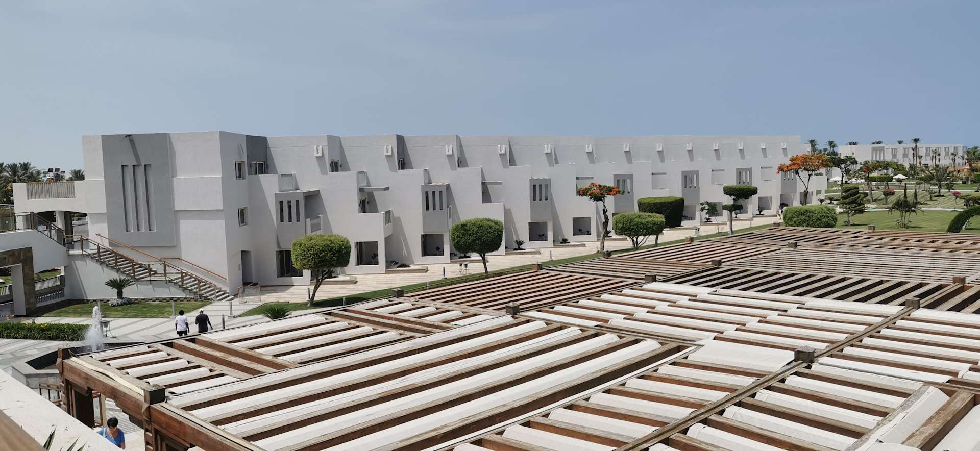 Blick von der Außenbar auf das Hotelgelände