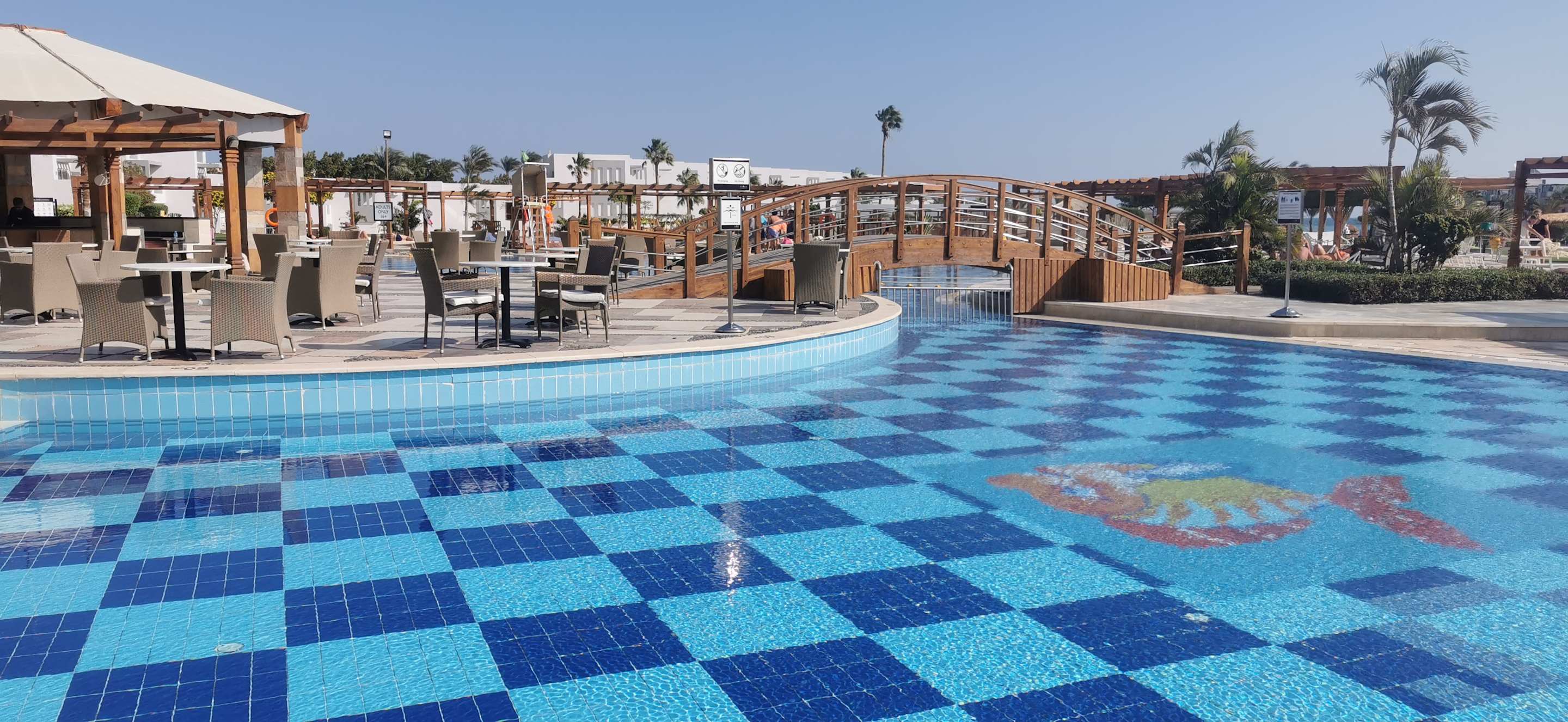 Die Sitzgelegenheiten vor der Poolbar