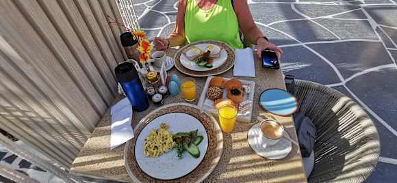 GastroDas Yades Restaurant. Blick auf einen Teil des Frühstücks