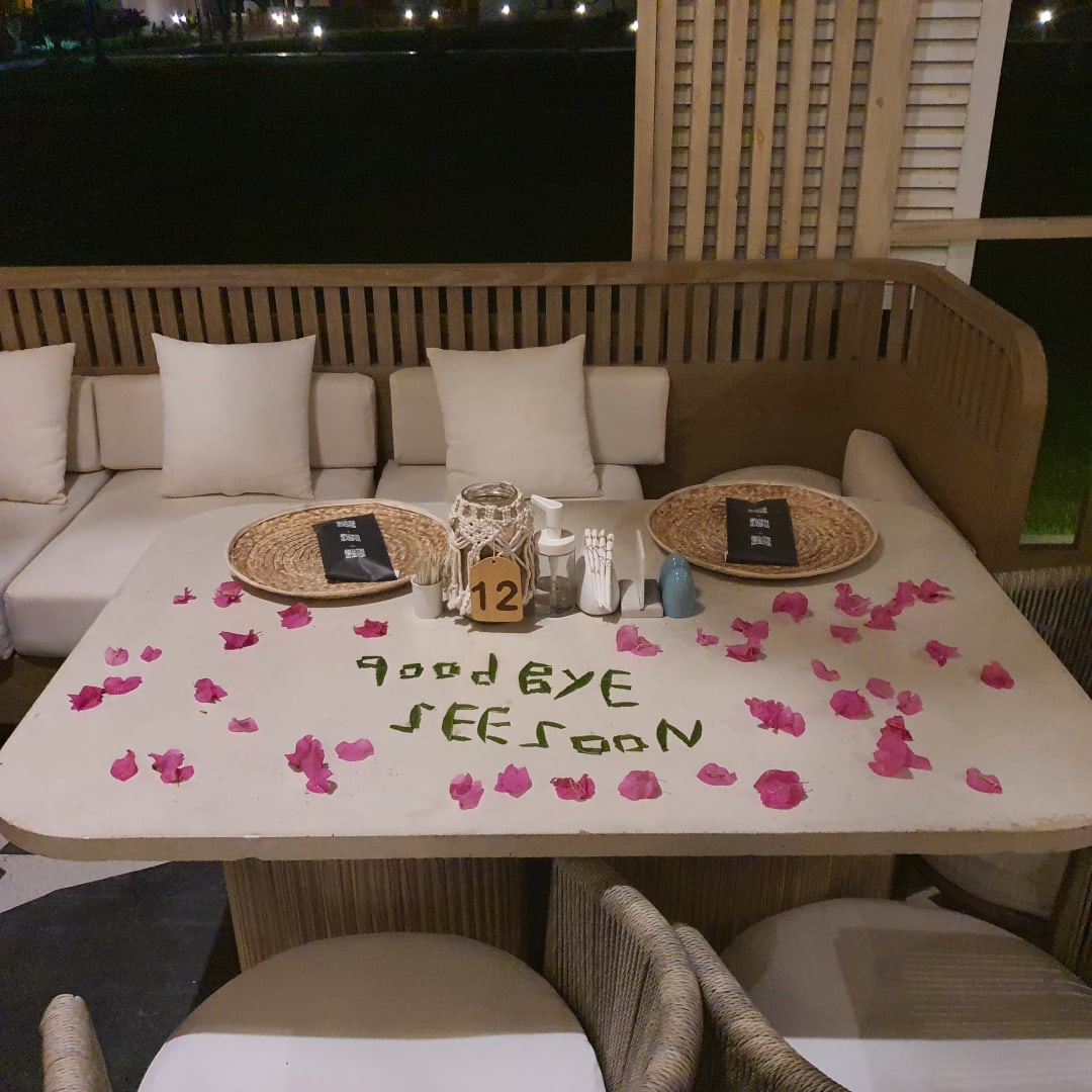 GastroDekorierter Tisch im Yades zum letzten Abendessen des Urlaubs.