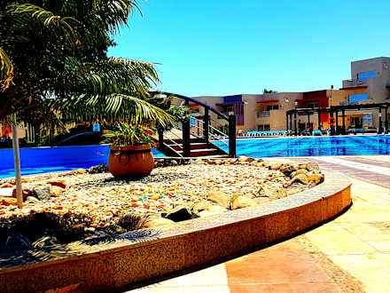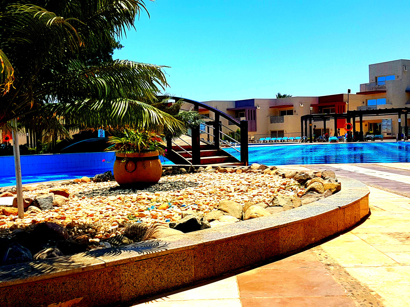 Ausblick auf den Ruhebereich am großen Pool