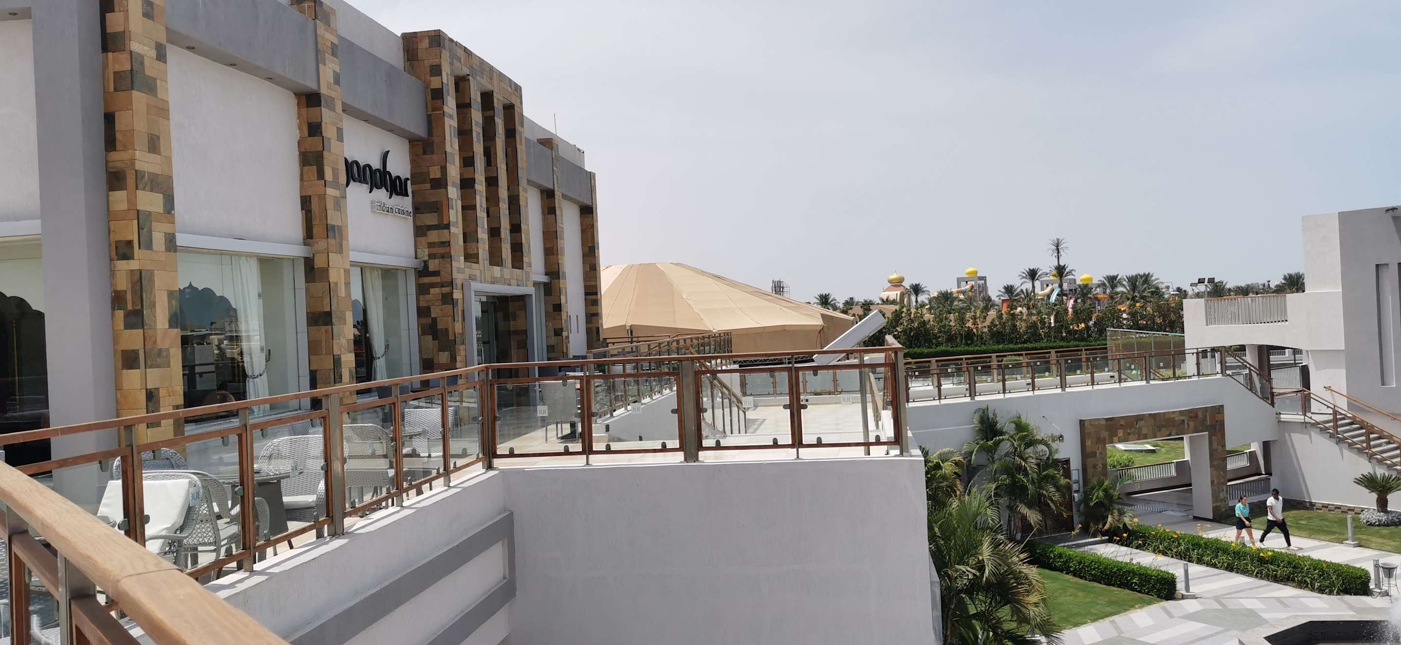 Blick von der Außenbar auf das Hotelgelände