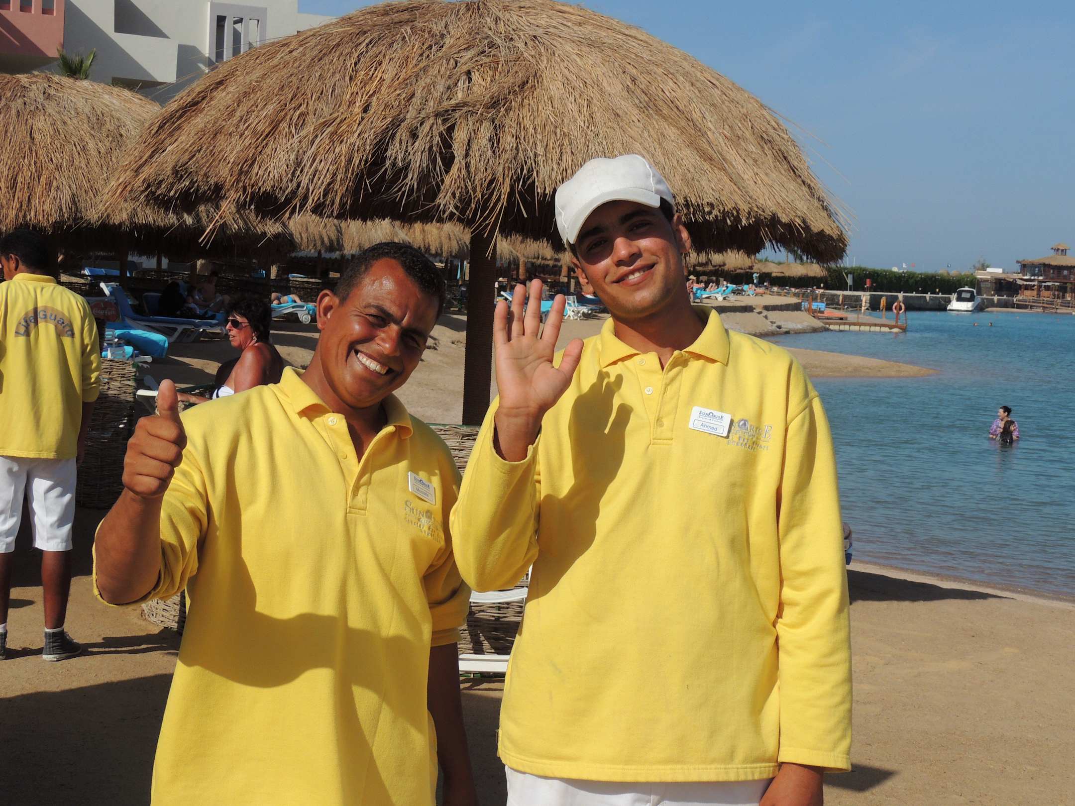 Immer ein Lächelndie freundlichen handtuchboys am strand