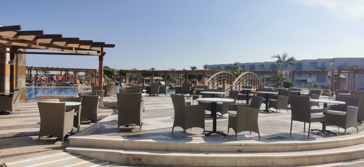 Die Sitzgelegenheiten vor der Poolbar