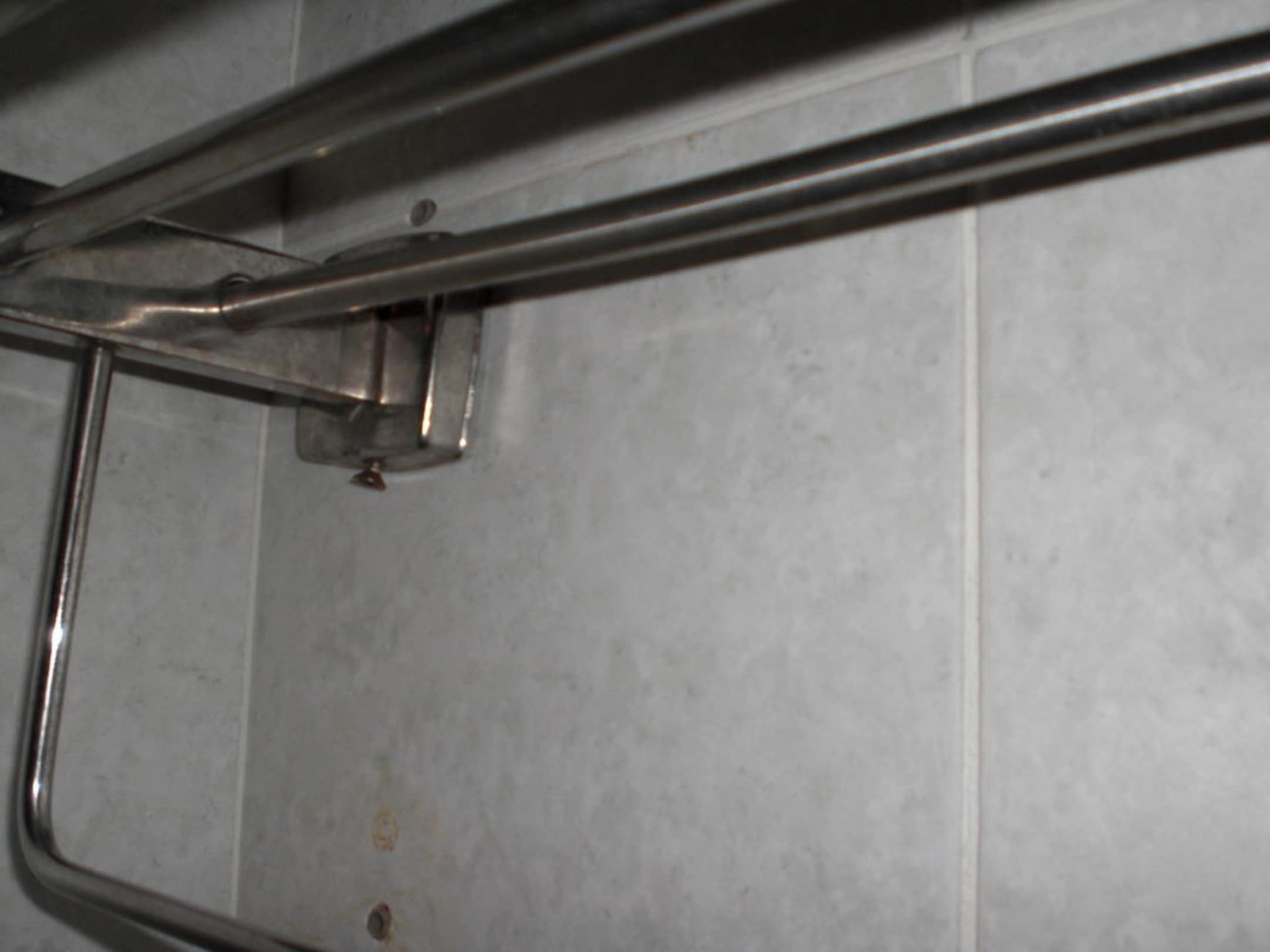 Rostiger Handtuchhalter mit herausstehenden Nägeln