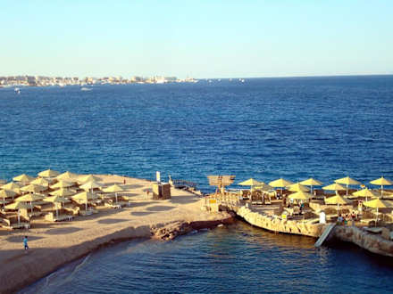 uitzicht op het strand en rode zee vanaf balkon