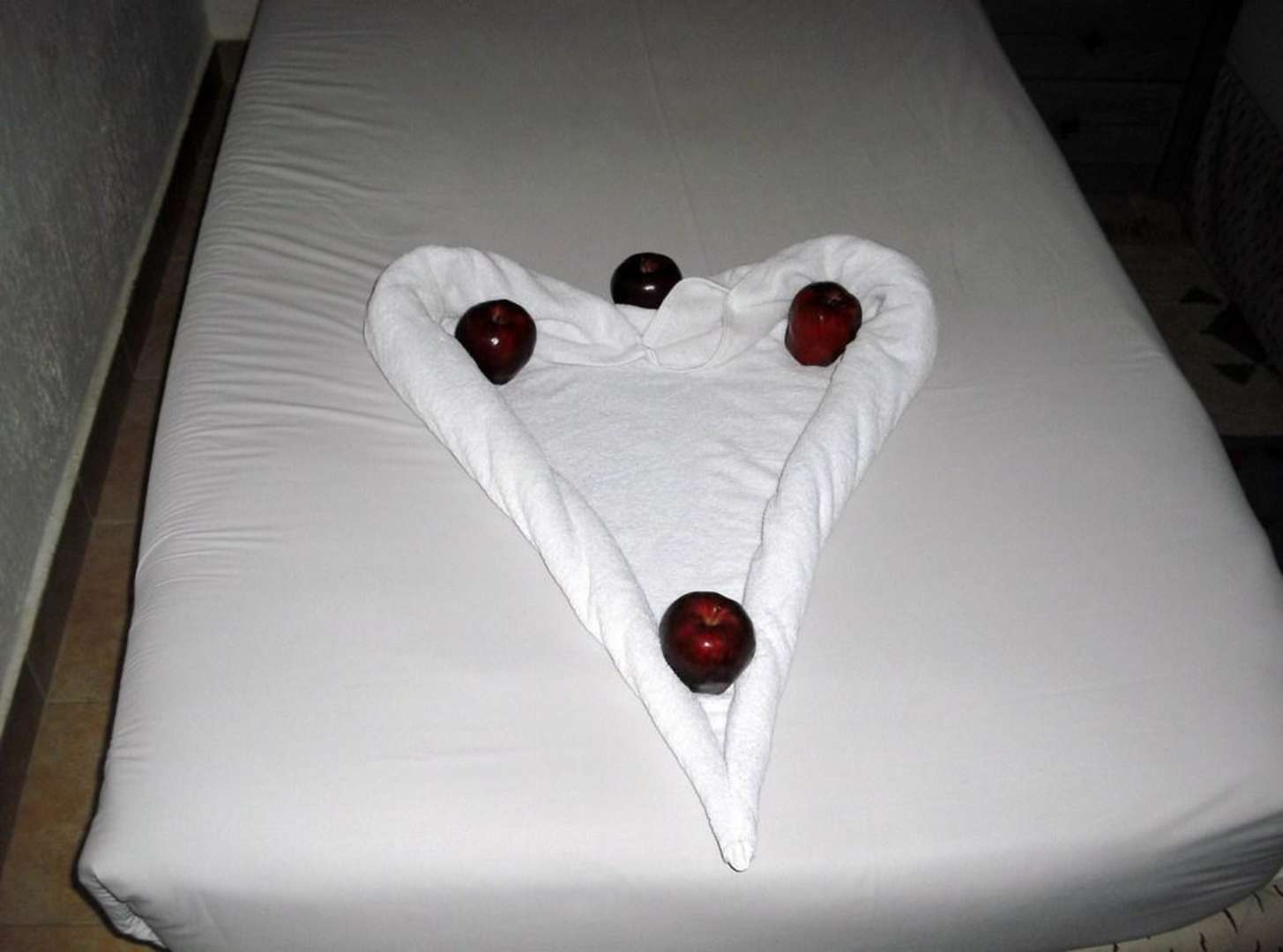 Herz aus Handtuch mit Äpfeln