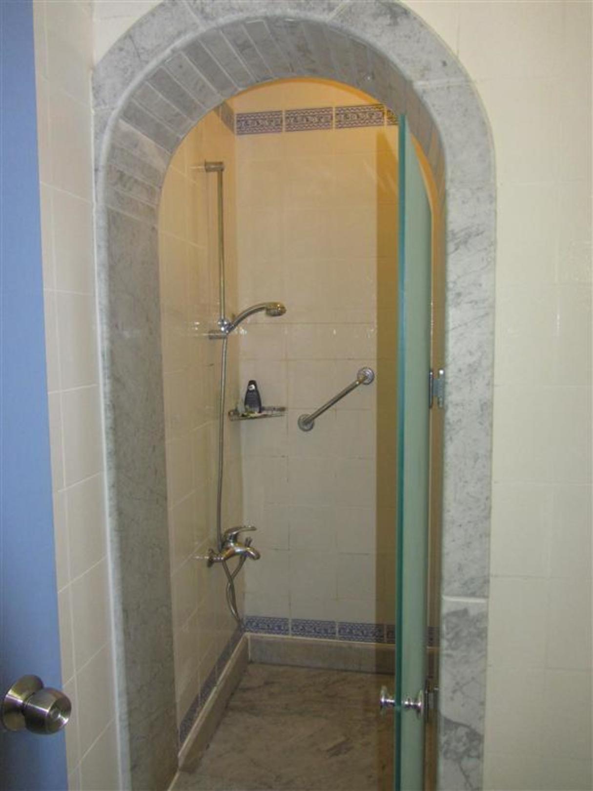 Geräumige Dusche mit seitlicher Ablage