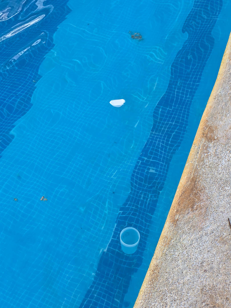Essen und Becher im Pool