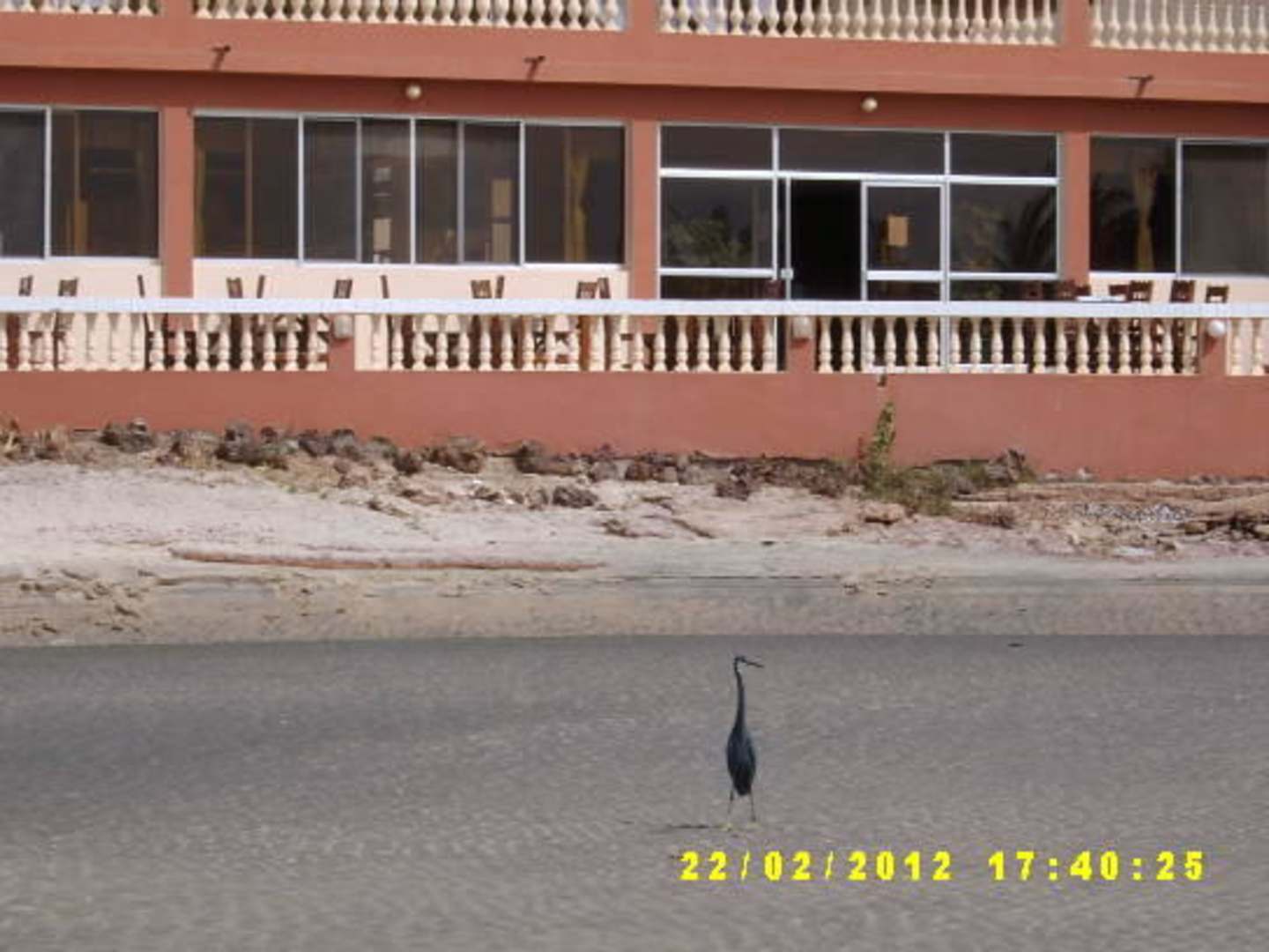 Reiher vor der Terrasse des Sunset Cafe