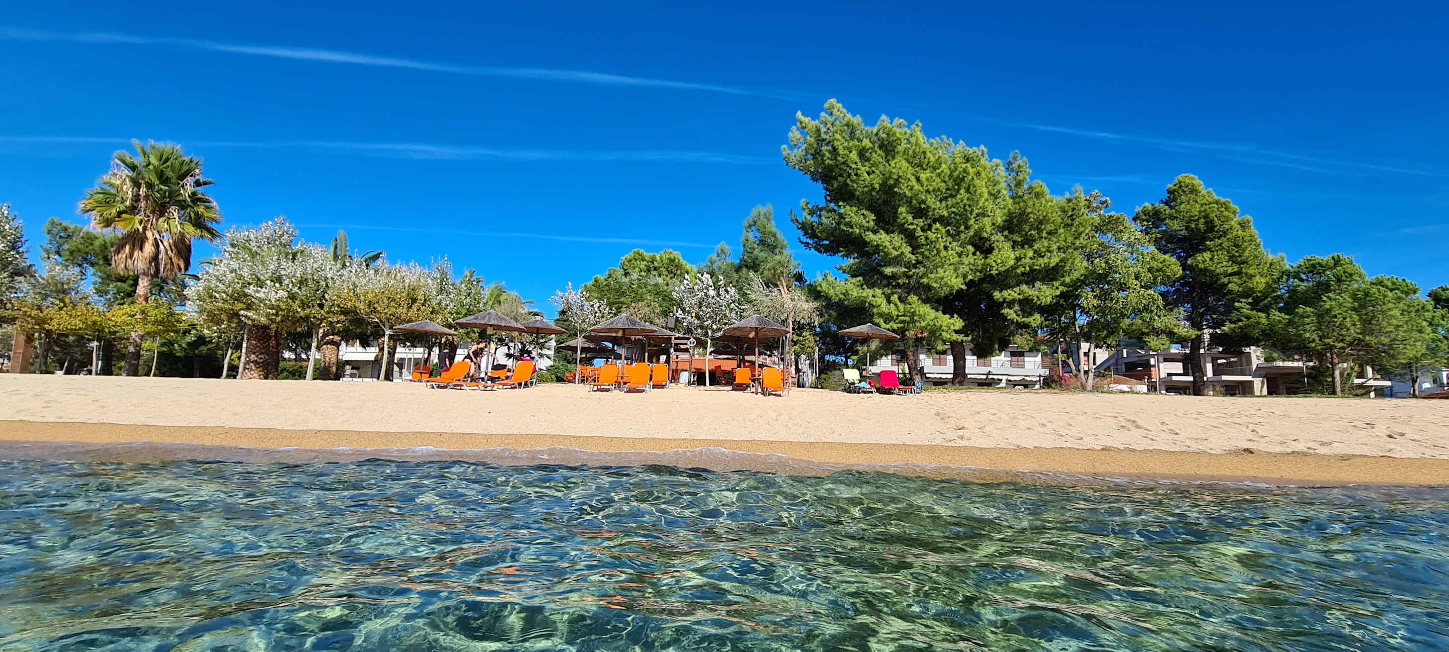 Blick vom Meer auf den Liegen bzw. Liegenbereich