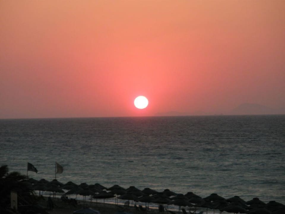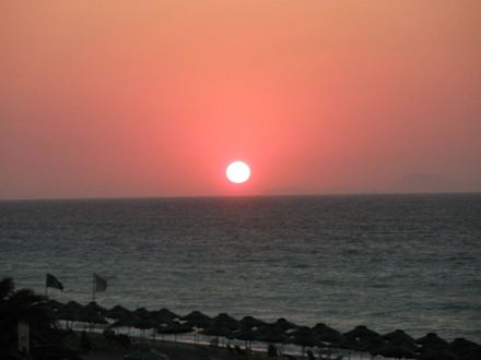 Zachód słońca z pokoju hotelowego.