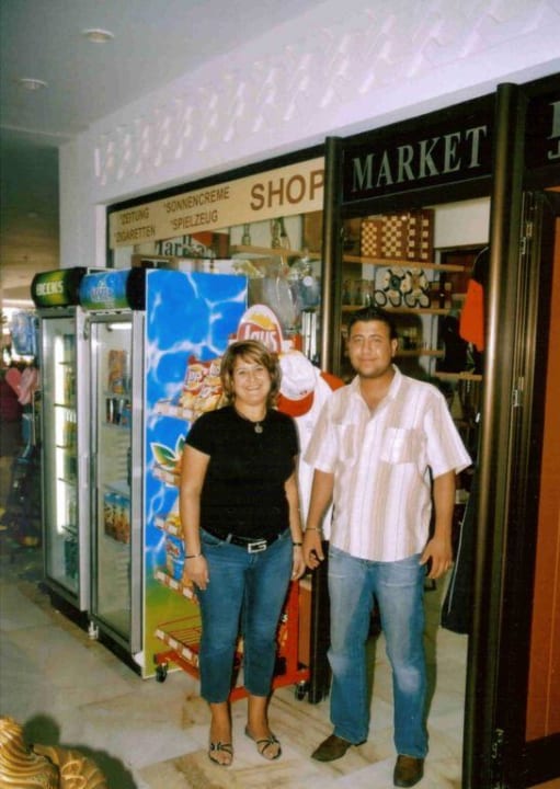 Meltem mit Mitarbeiter Mehmet vor ihrem Shop Nr1Meltem, Inhaberin des Shops, mit Memet ihrem Mitarbeiter. Beide sind sehr freundlich und liebenswert. Memet ist für jeden Spaß zu haben. In Meltems Shop werden u. a. T-Shirts, Souveniers, Zigaretten, Sonnenschuzmittel, zu günstigen Preisen angeboten.