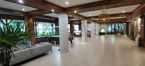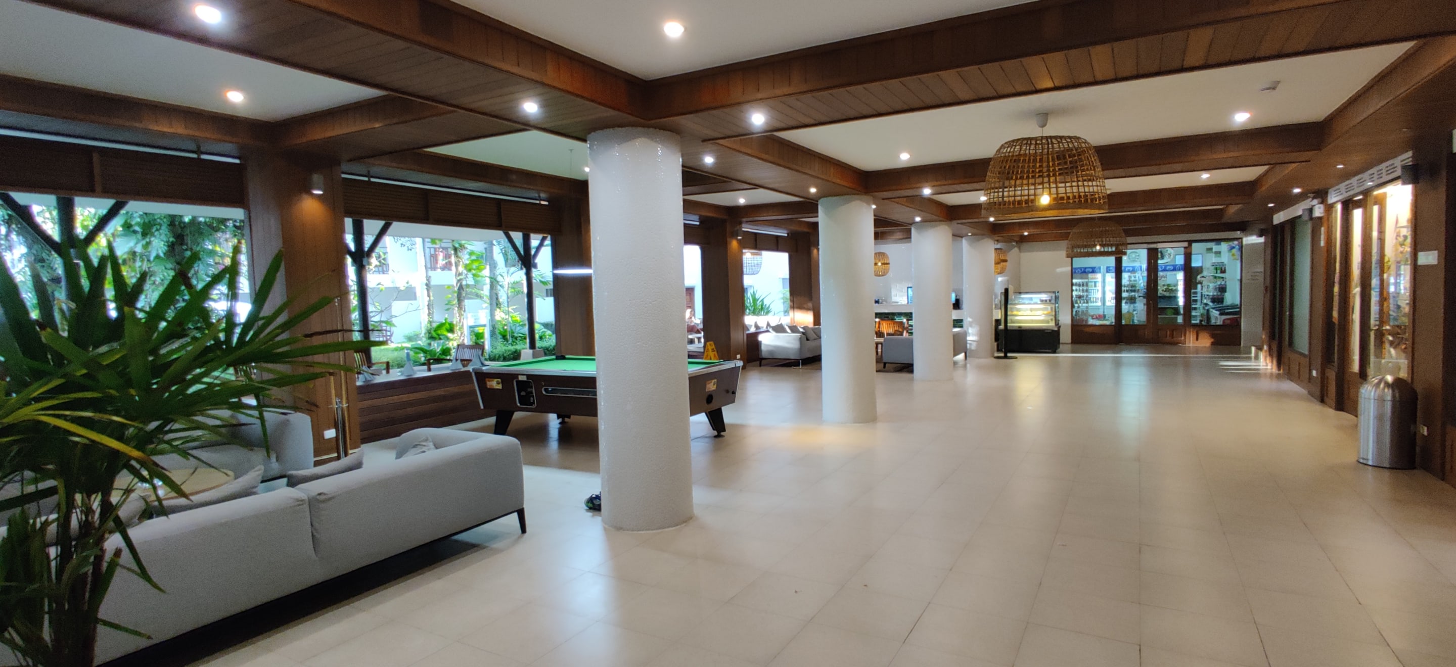 ein Bereich der Lobby,mit Minimarkt, Billiard,WC, Aufenthaltsbereich usw.