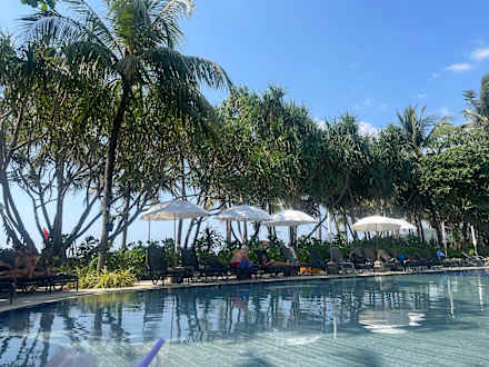 Der Blick vom Pool an den Strand