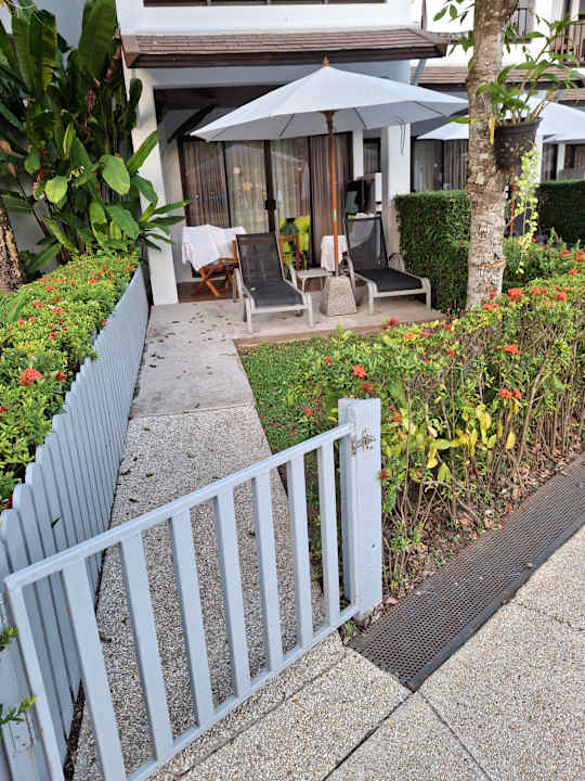 Terrasse mit Zugang zum Pool