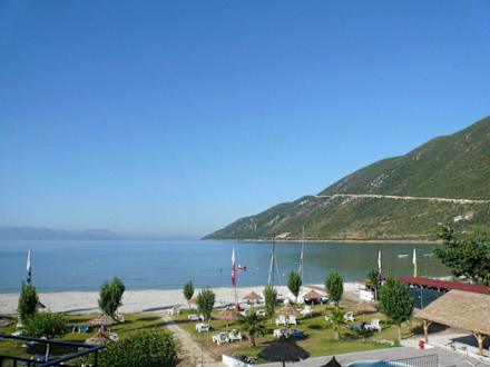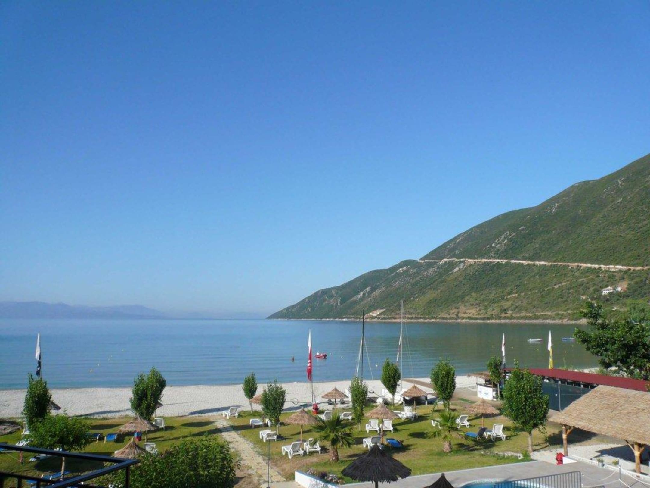 Liegewiese und Strand vor dem HotelLiegewiese und Srtrand direkt vor dem Sur Hotel Margelis und der Bar Scherzo. rechts am Rand die Surfstation
