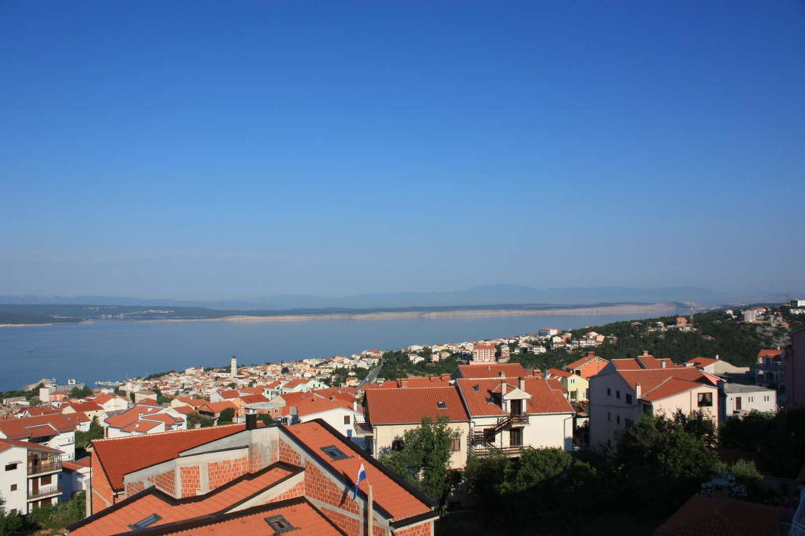 Blick vom BalkonBlick vom Balkon Rtg. Brücke zur Insel Krk über die Dächer der Stadt Crikvenica hinweg.