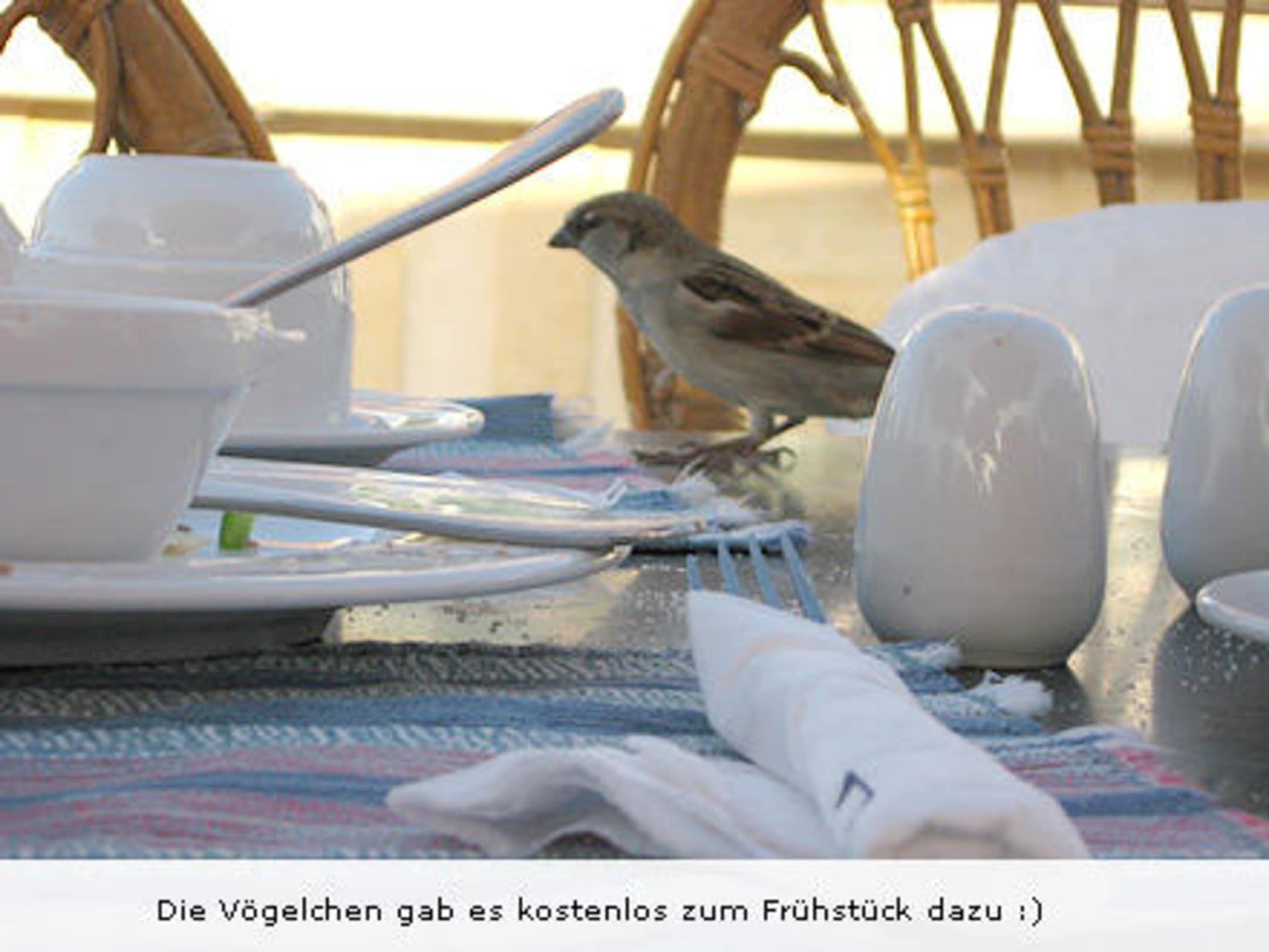 kleine Vögelchen beim Frühstück verstärkten das Urlaubsfeeling :)