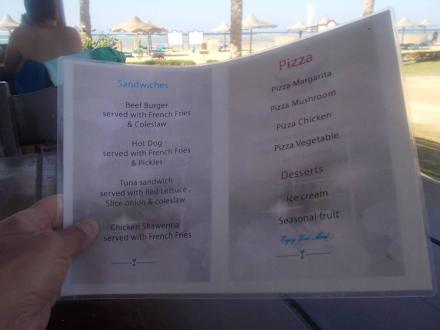 Speisekarte Strandbar Swisstouch Oriental Resort Marsa Alam