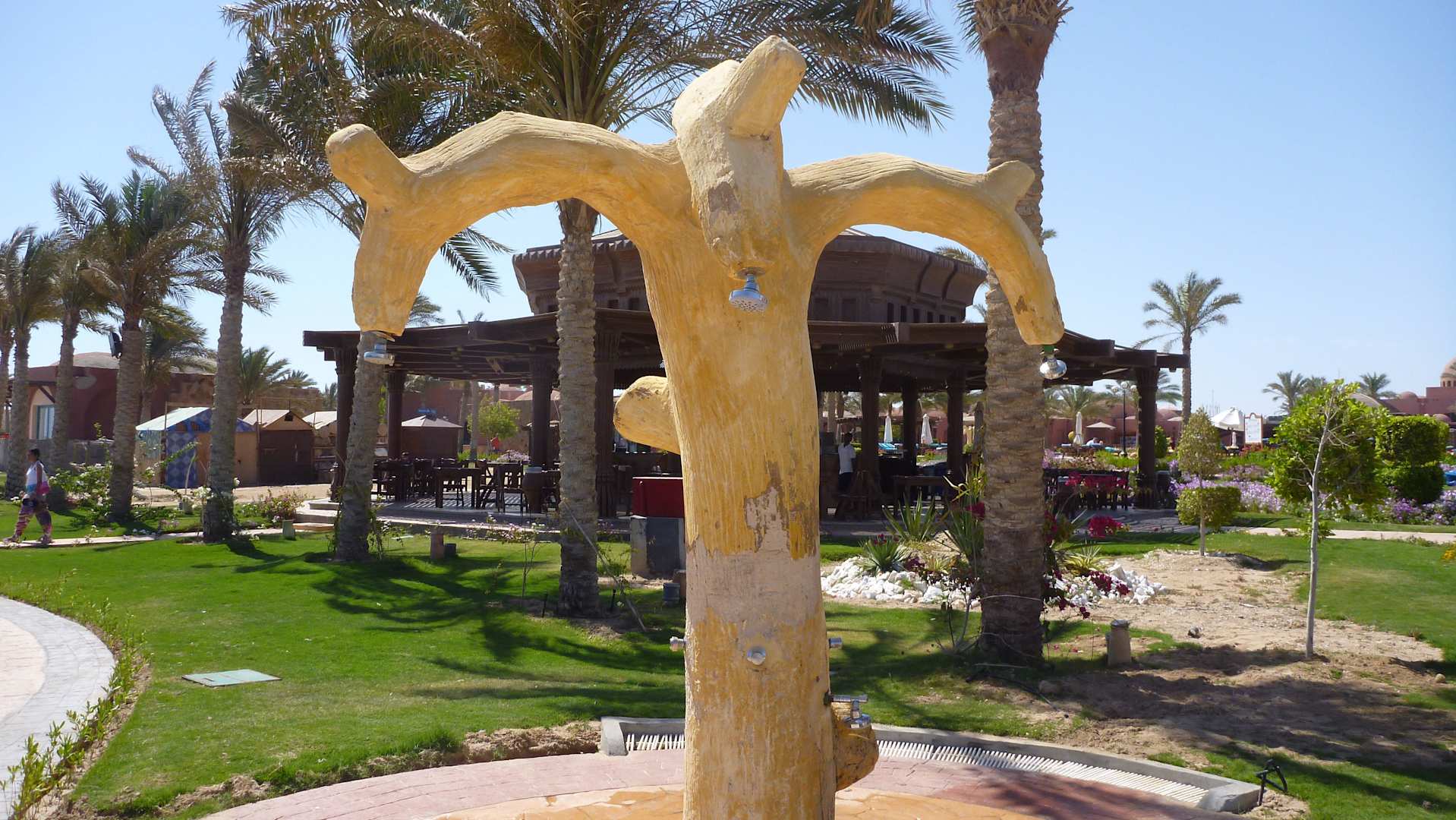 Dusche am Strand und Bar im Hintergrund