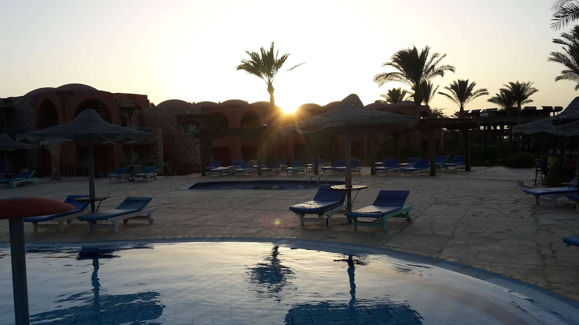Sonnenuntergang 18.00 Uhr am Poolbar