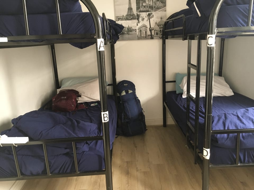 ZimmerViererzimmer. Guter Stauraum unter den Betten (der Rucksack passt drunter). Sonst sind die Zimmer eher eng.