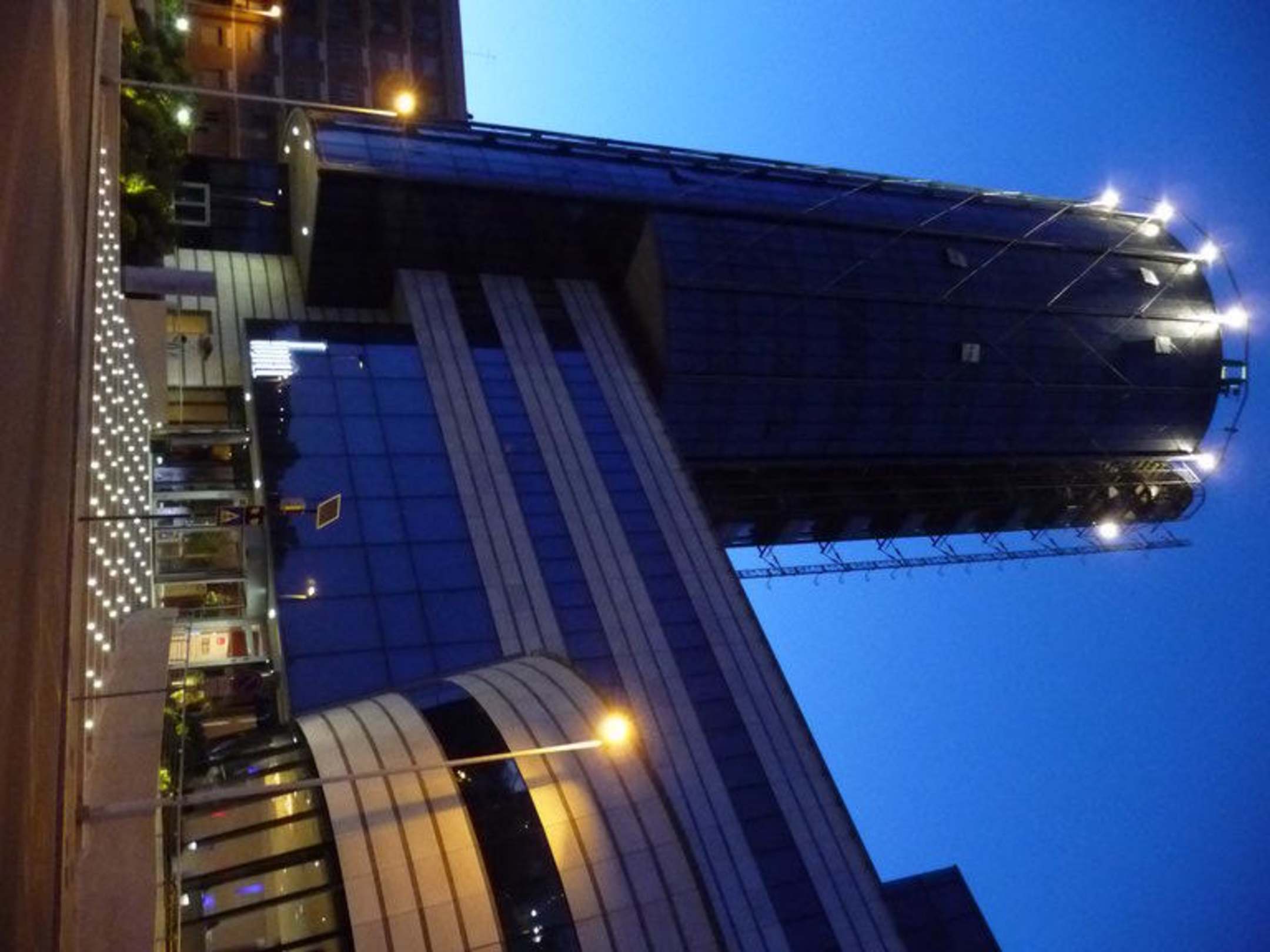 Hotelturm T-Hotel mit AbendbeleuchtungAbends konnte man die beleuchtete Spitze des Hotelturms gut sehen.