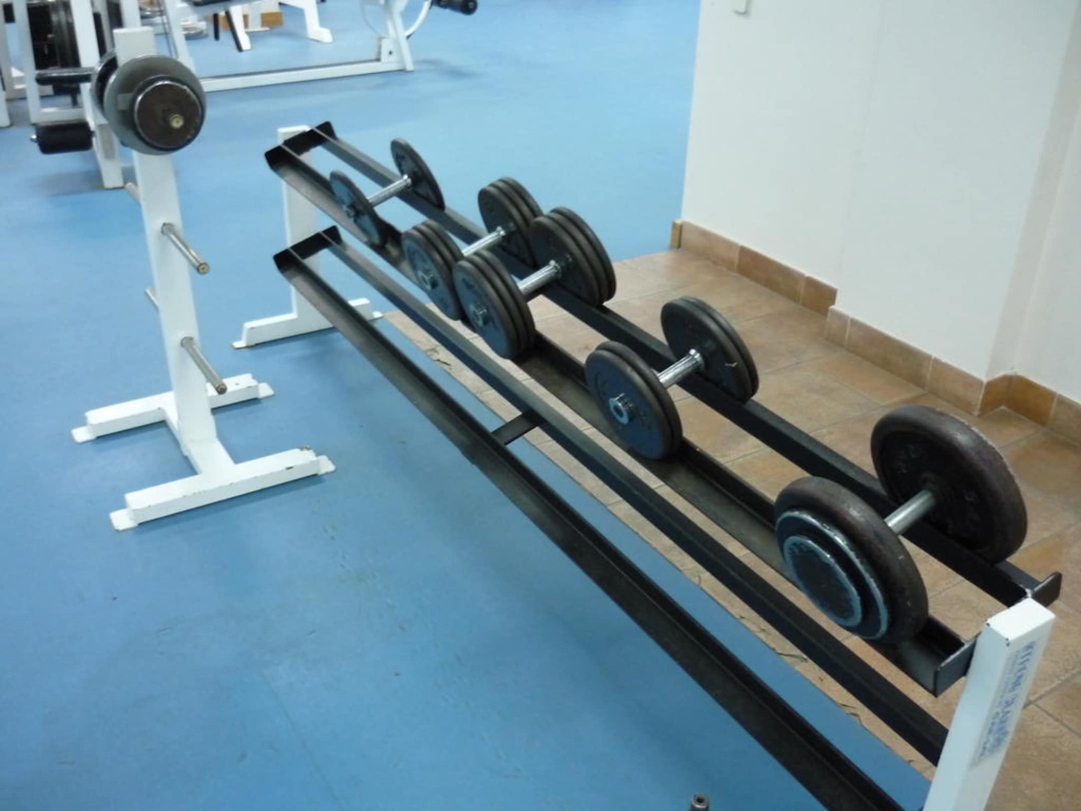 Der Rest der Kurzhanteln ist vermutlich gestohlen worden. Mit den hier vorhandenen Resten ist an ernsthaftes Training überhaupt nicht zu denken. Schade. Die leichteste Hantel wiegt 10 Kilo, und die Scheiben klappern umher.