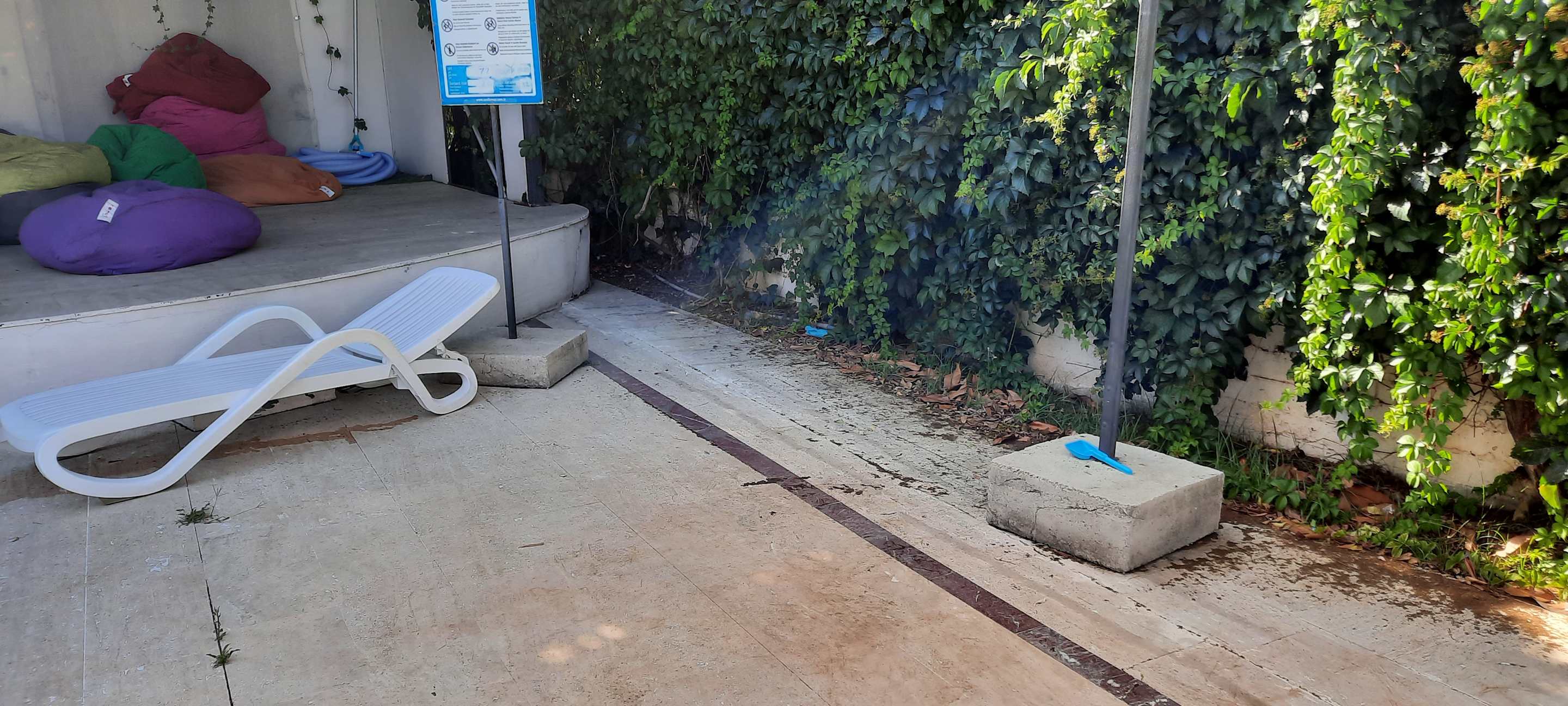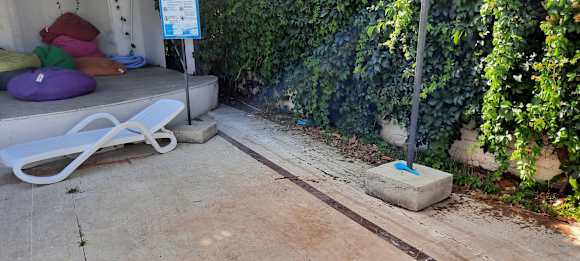 Ansicht vom Pool bzw. den Liegen