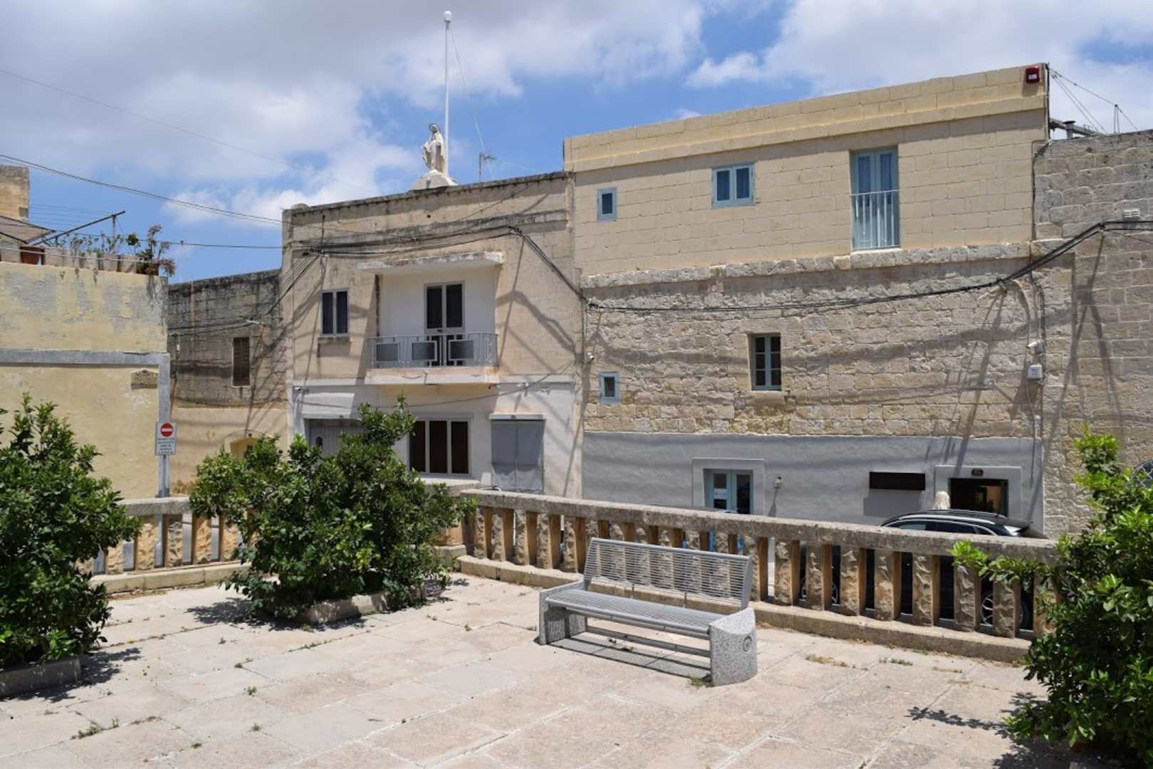 Hotelgebäude von der Straße aus gesehen. Recht unscheinbar.
