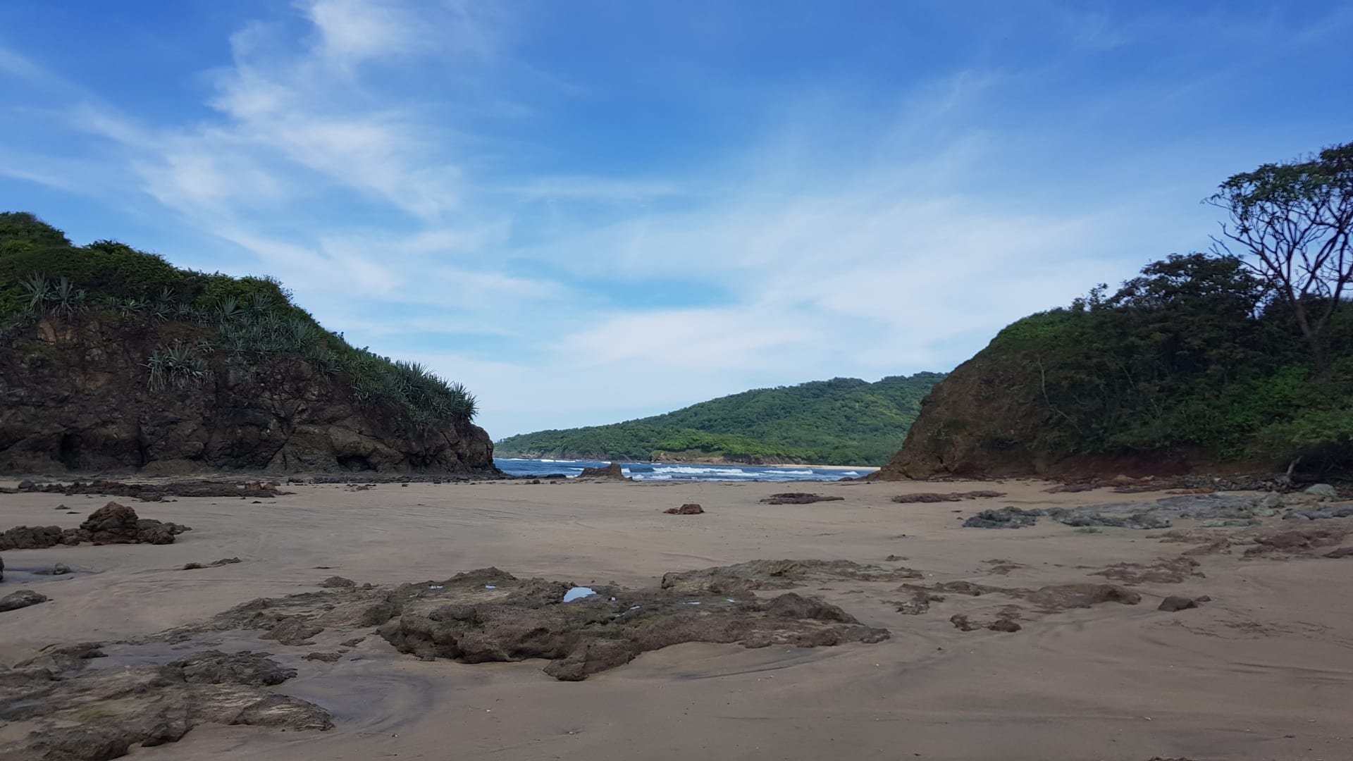 rechts vom Hotel, mit dem Boot über den Fluss, dann ca. 3-4 km bis zum Ende am großen Felsen....