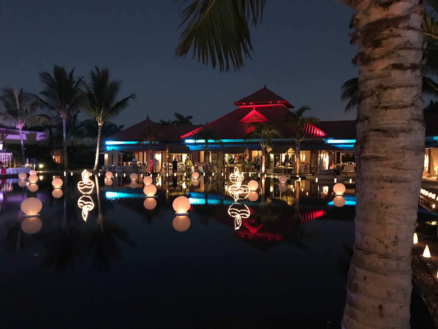 Hauptpool mit festlicher Beleuchtung für Divali