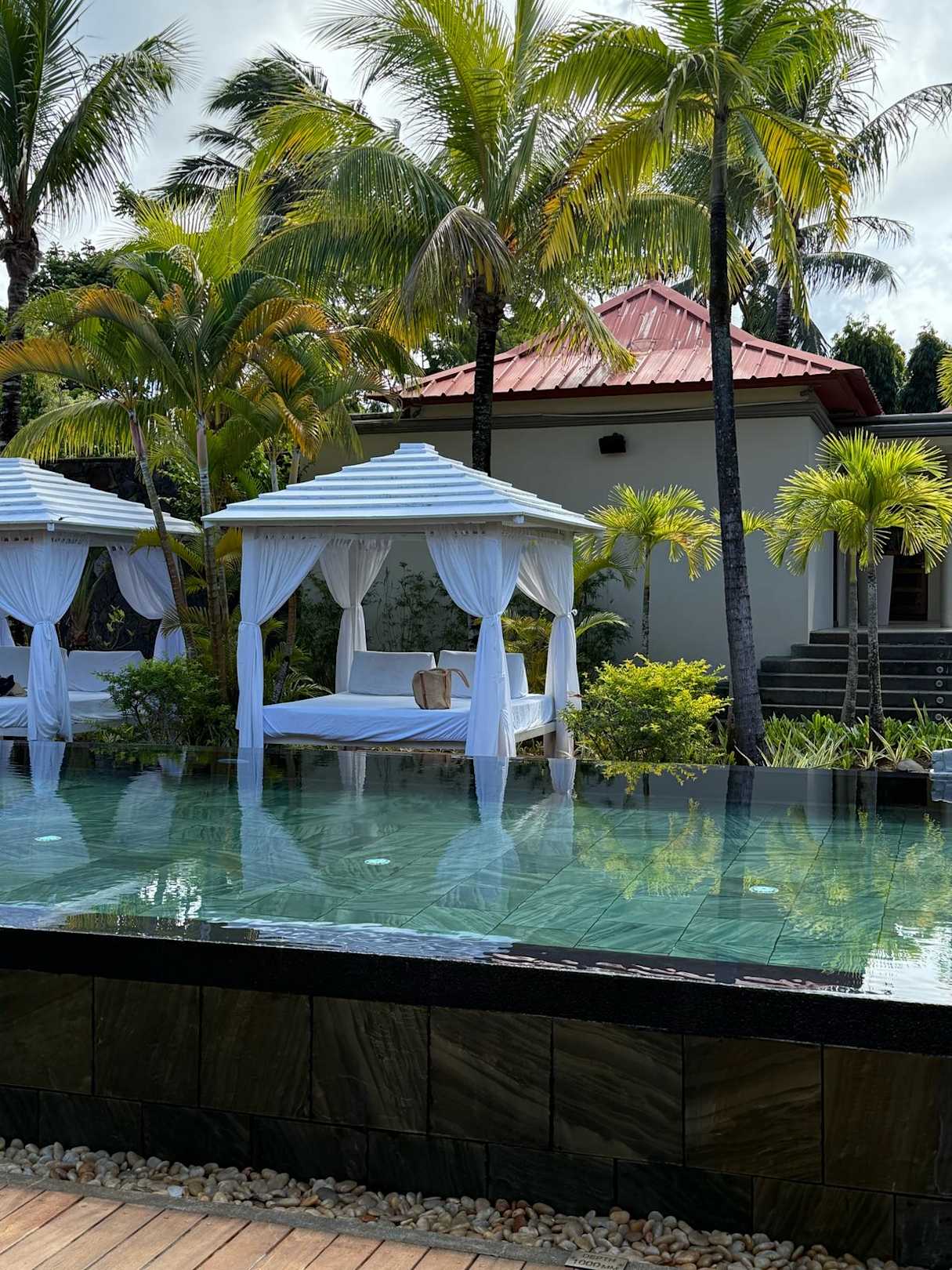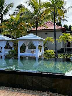 Unser exklusiver Wellnessbereich lädt zum Entspannen und Wohlfühlen ein. Inmitten tropischer Palmen erwarten Sie stilvolle Daybeds am Infinity-Pool, ideal zum Abschalten und Genießen. Die Atmosphäre ist ruhig, harm