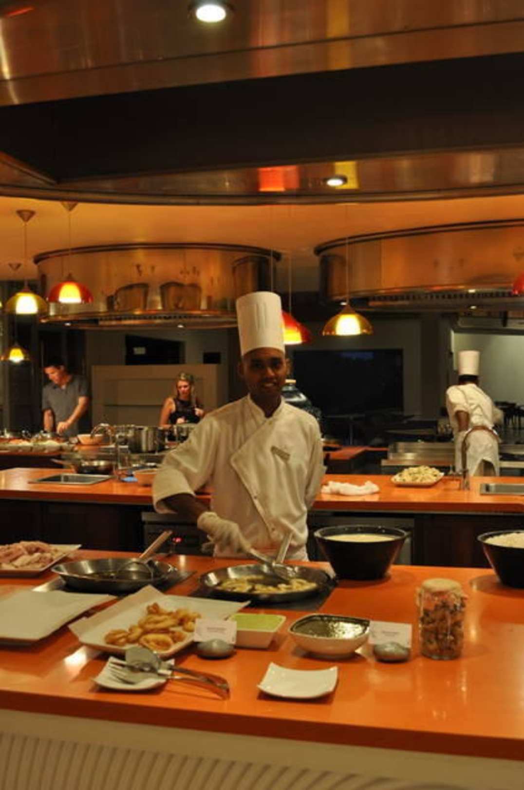Show-cooking im Hauptrestaurant
