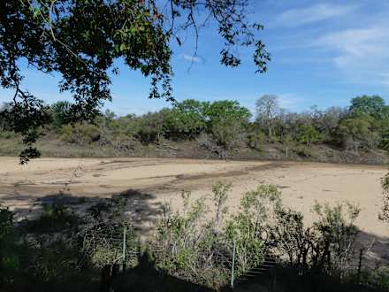 Blick von der Veranda auf den Trockenfluss