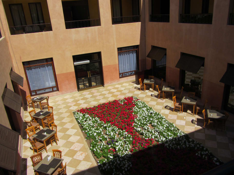 Innenhof mit Eingang zum Restaurant Buffett