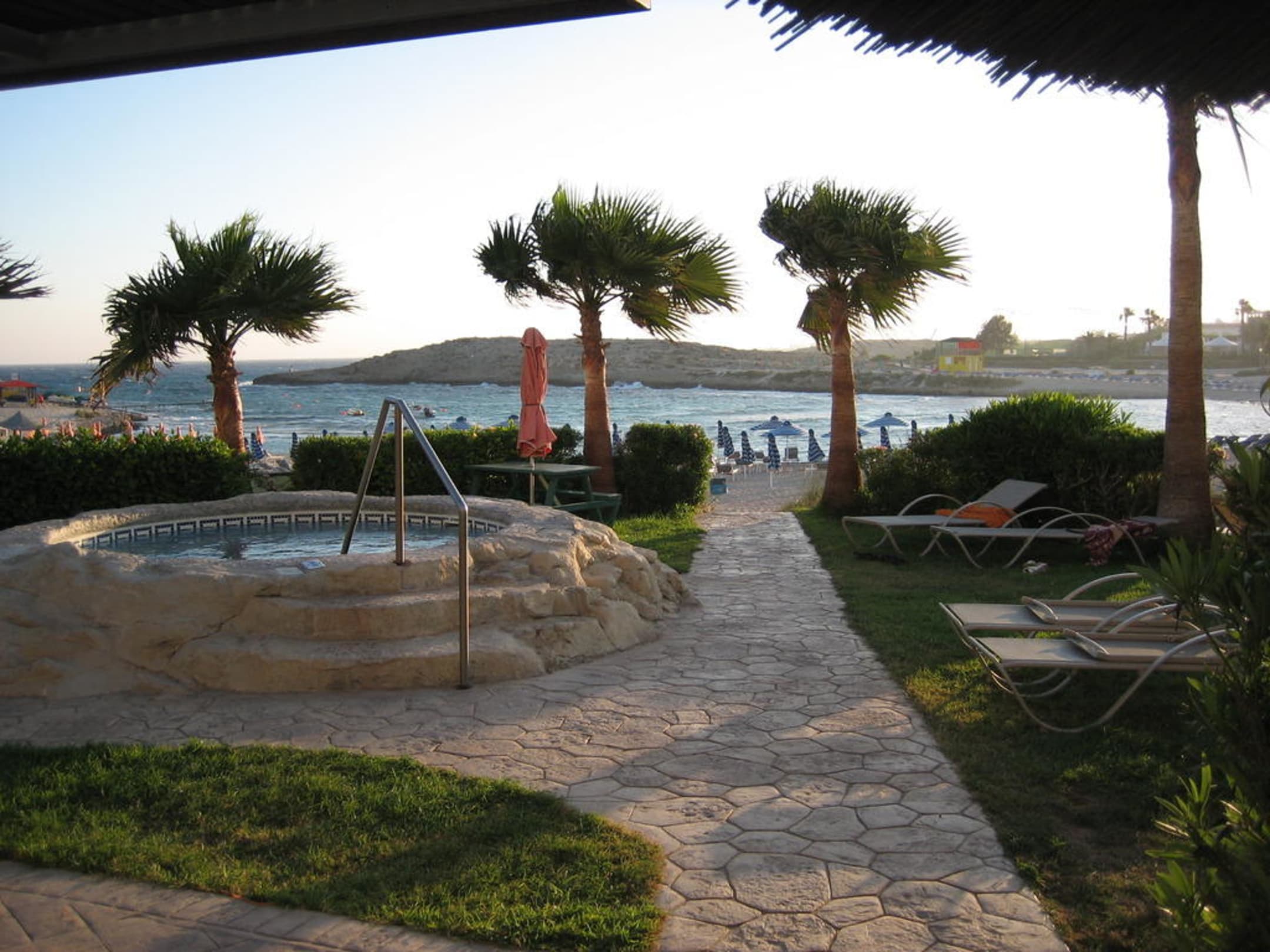 Blick vom Pool zum Jacuzzi und Meer