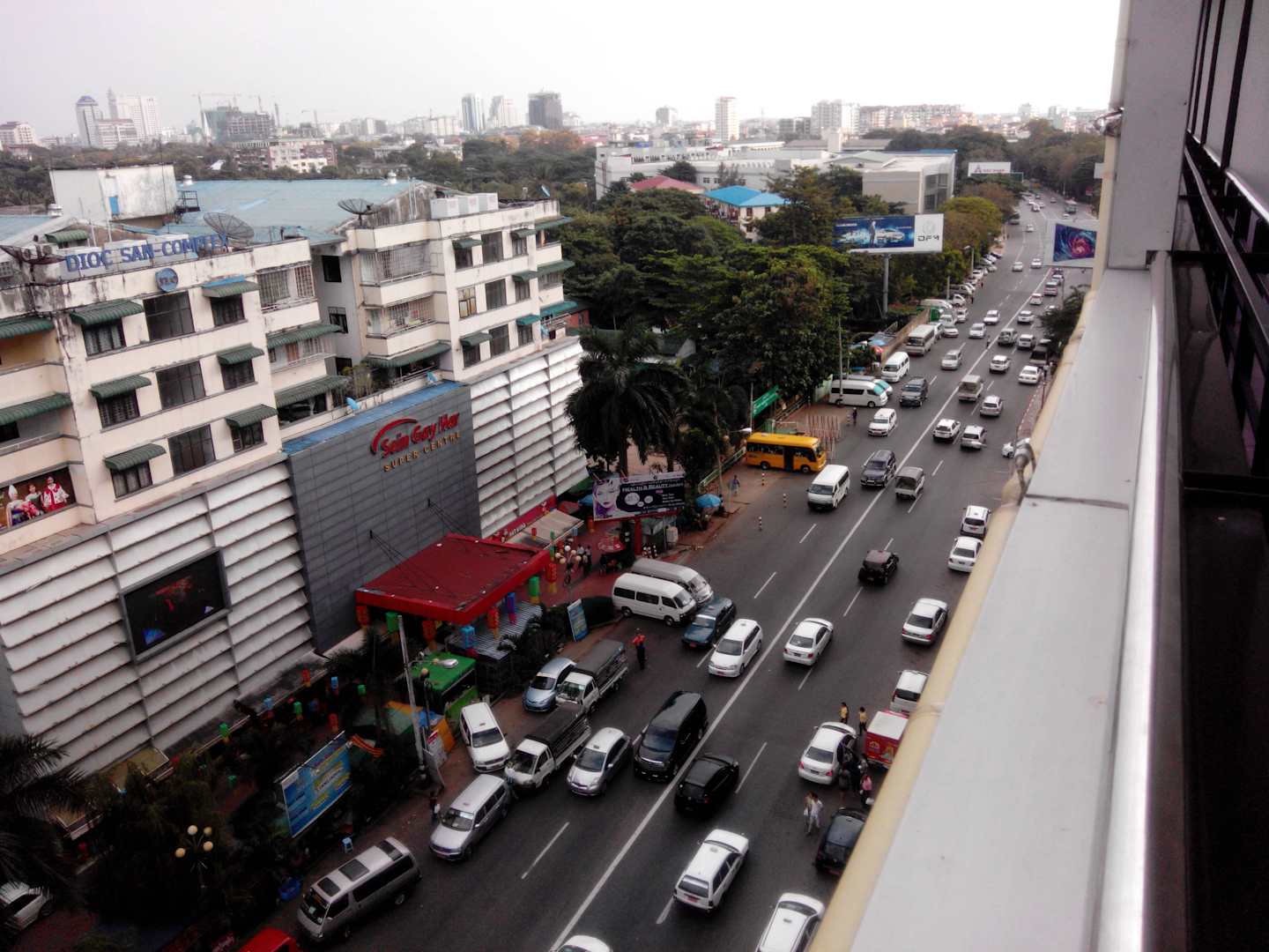 Ausblick rechts auf Einkaufszentrum gegenüber