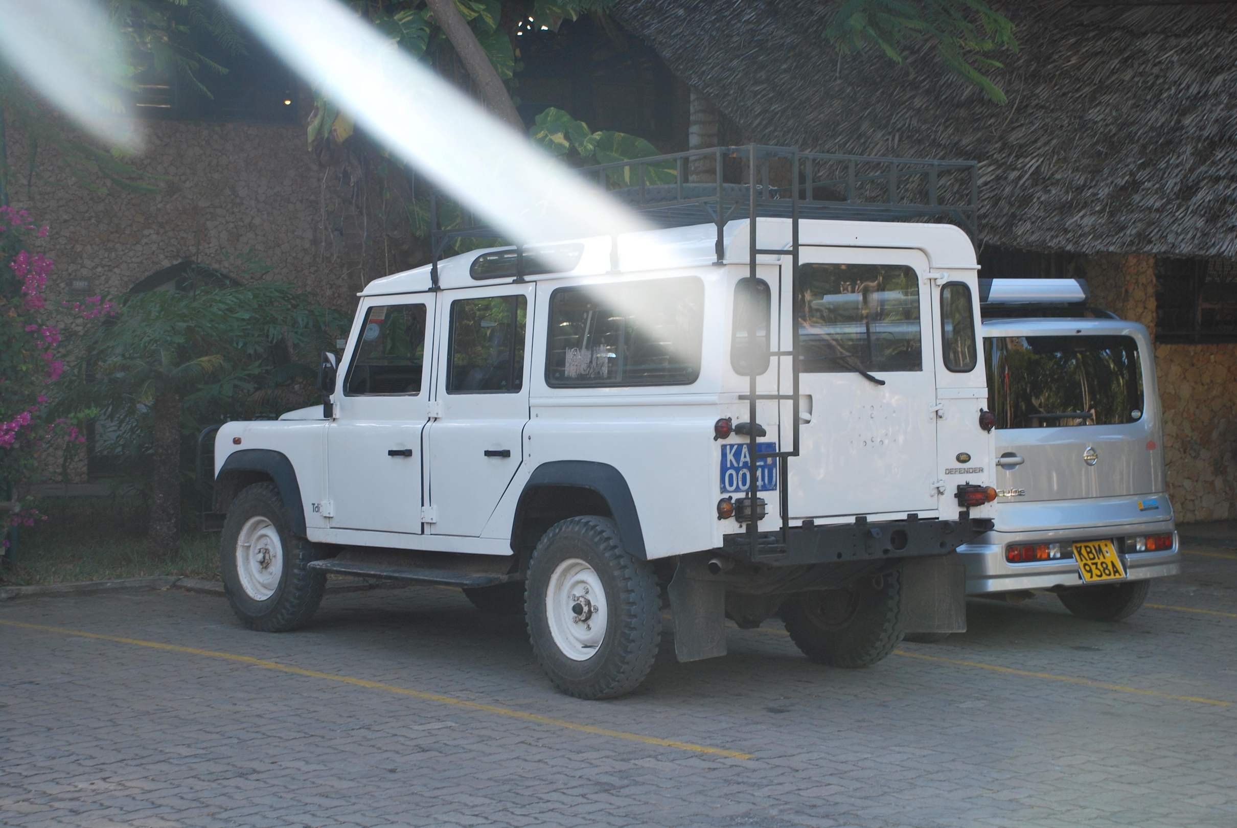 Hotelparkplatz mit Safari-Jeep