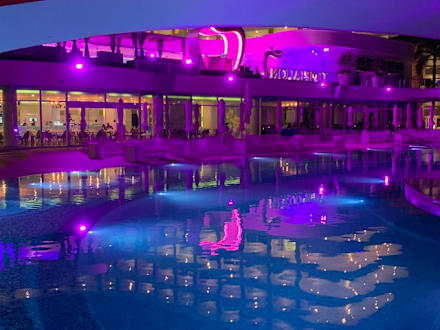Sexy Pool bei Nacht mit Restaurants Rain / Flame