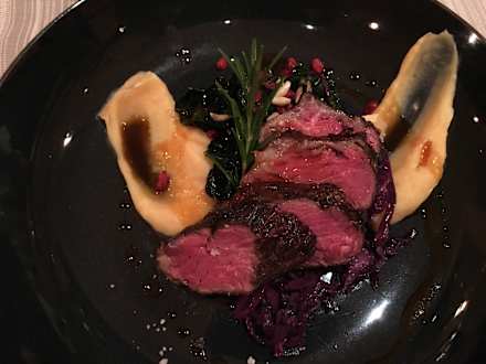 Onglet mit MisoCreme und Rotkohl